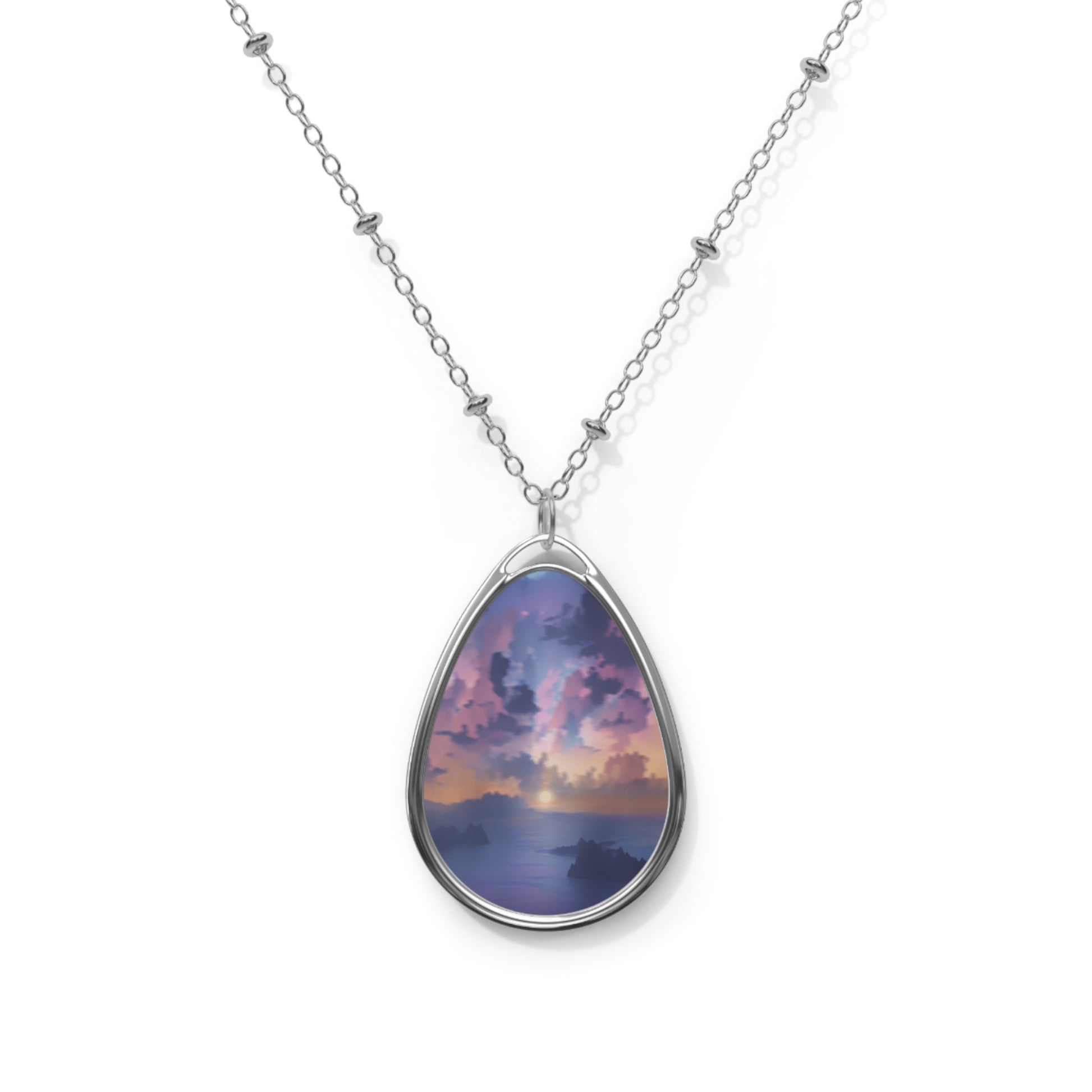 All DIVINE pendants and chains are made with a robust zinc alloy for dazzling looks that are long-lasting and beautiful. The print panel is made with aluminum while the pendant itself comes in a unique shape of an ellipse and artwork that accentuates any outfit!